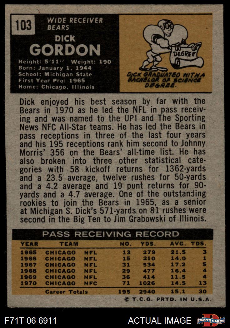 1971 Topps #103 Dick Gordon Front Thumbnail