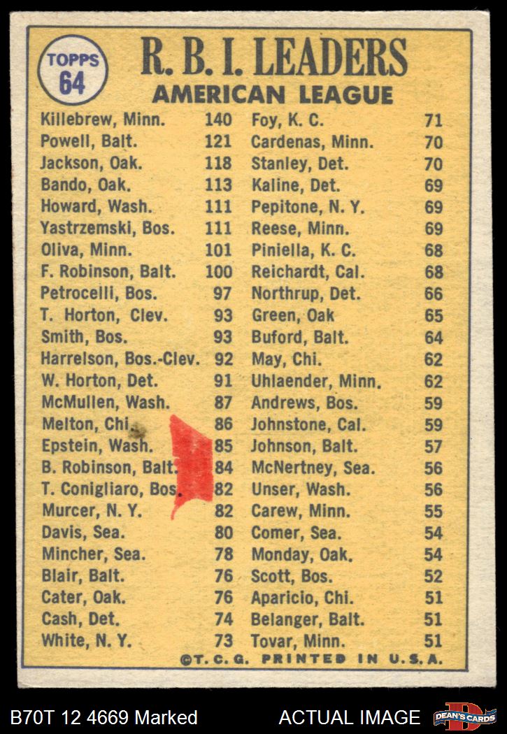 1970 Topps #64 AL RBI Leaders