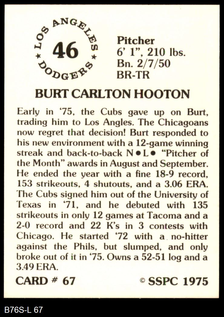 1975 SSPC #67 Burt Hooton 8 - NM/MT