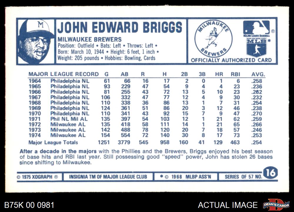 1975 Kellogg's #16 Johnny Briggs