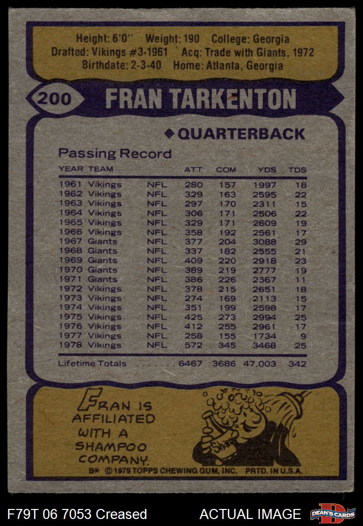 1979 Topps #200 Fran Tarkenton 1.5 - FAIR