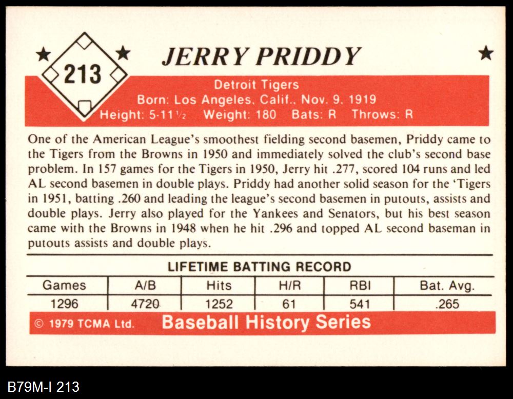 1979 TCMA The 1950's #213 Jerry Priddy