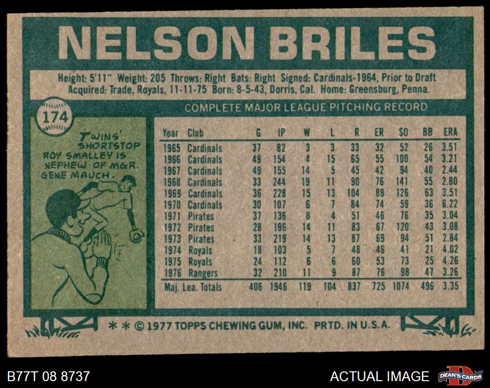 1977 Topps #174 Nelson Briles 4 - VG/EX