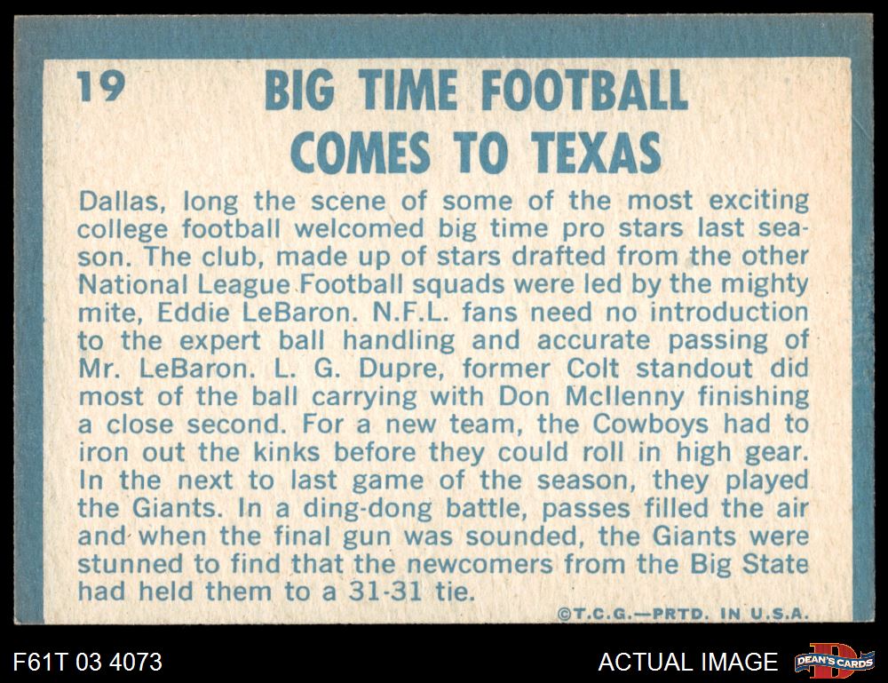 1961 Topps #19 - Eddie LeBaron 1960 Football Highlights 3 - VG
