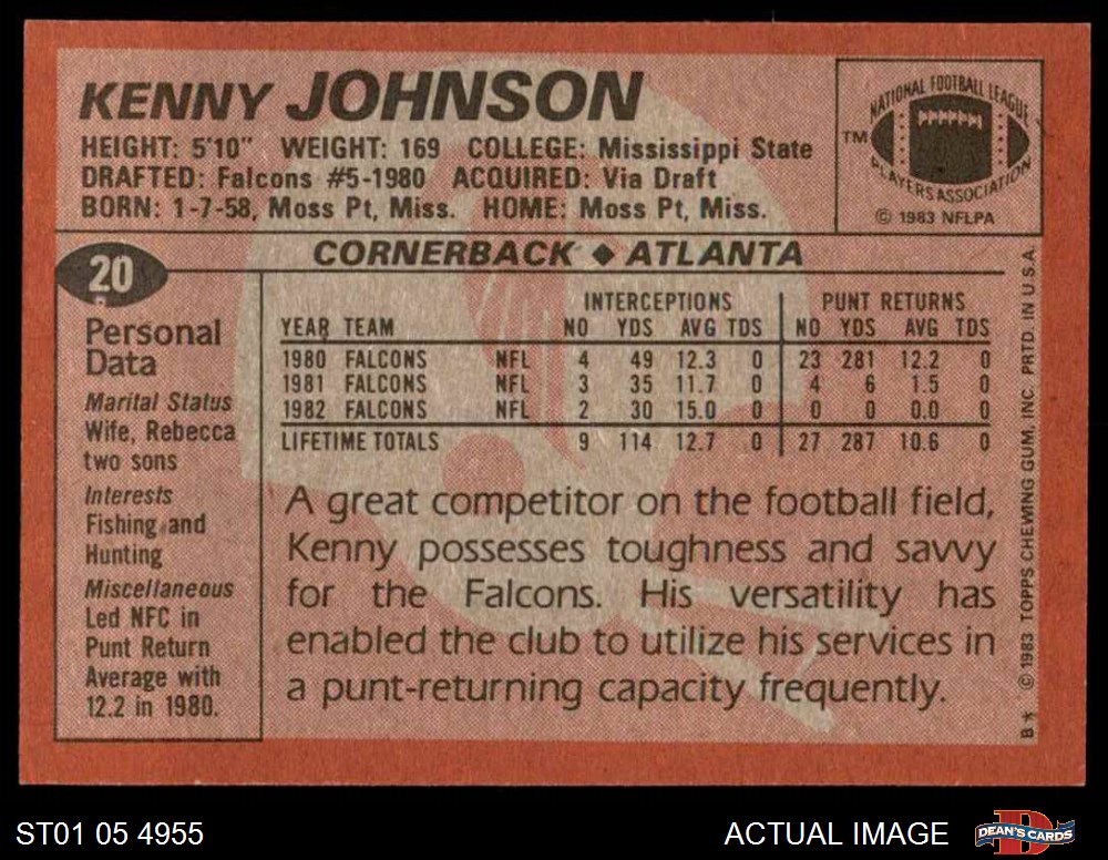 1983 Topps #20 Kenny Johnson