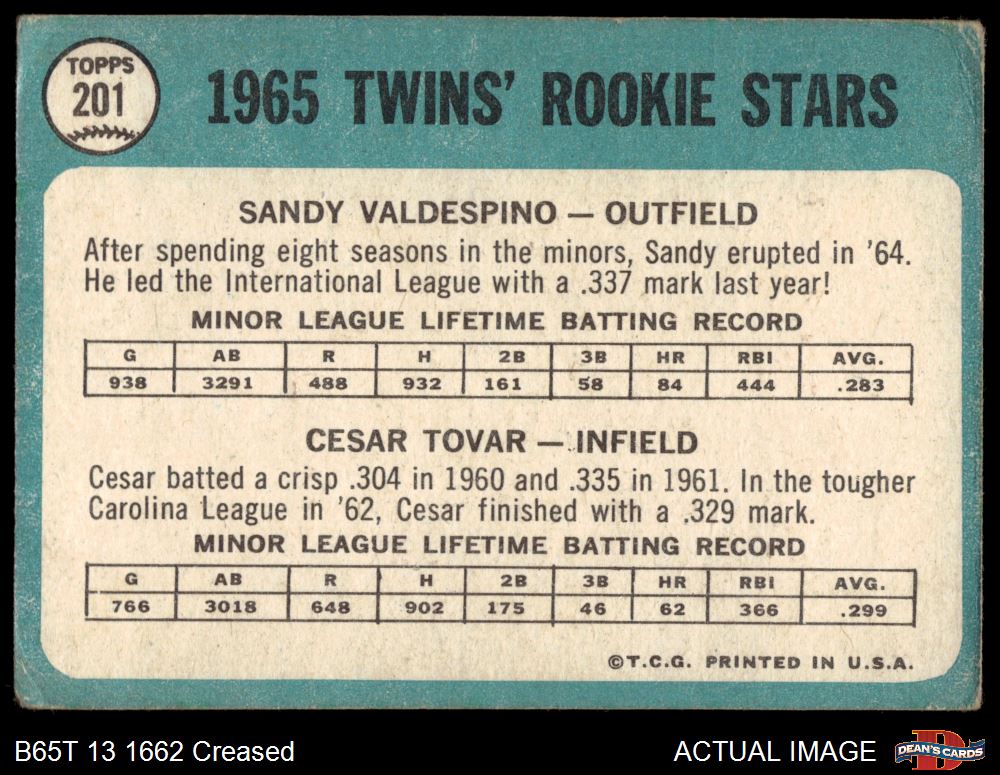 1965 Topps #201 - Cesar Tovar / Sandy Valdespino Twins Rookies 1.5 - FAIR