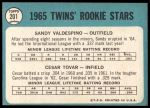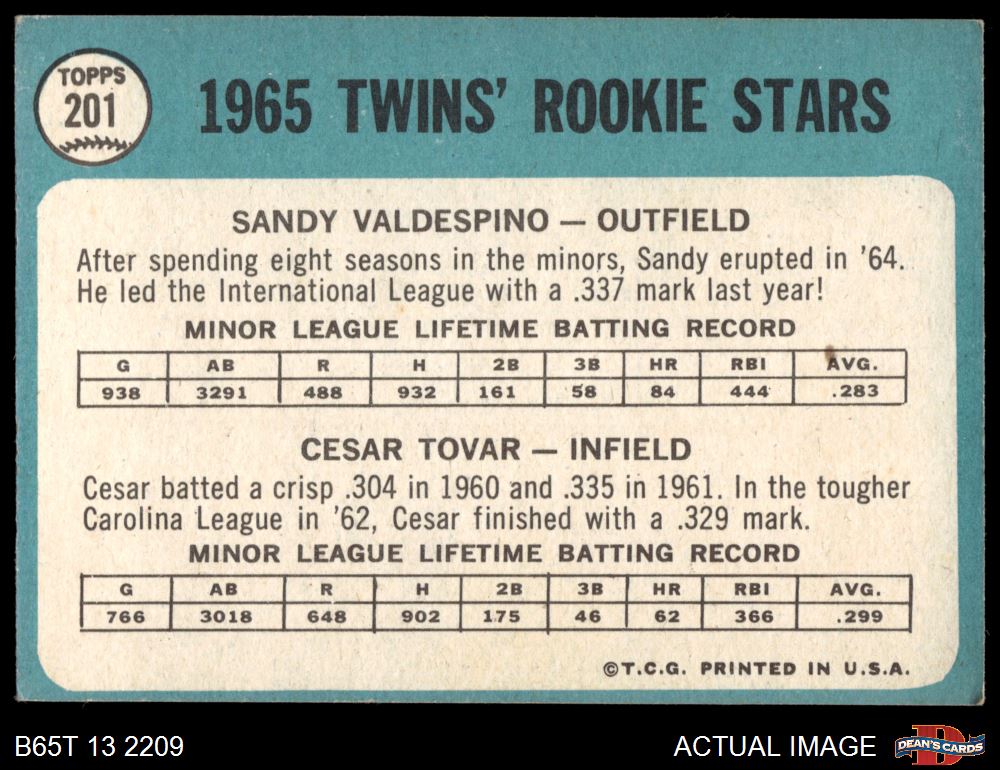 1965 Topps #201 - Cesar Tovar / Sandy Valdespino Twins Rookies 4 - VG/EX