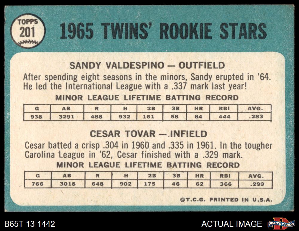 1965 Topps #201 - Cesar Tovar / Sandy Valdespino Twins Rookies 4.5 - VG/EX+