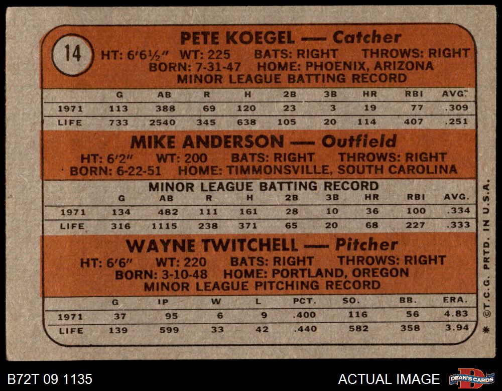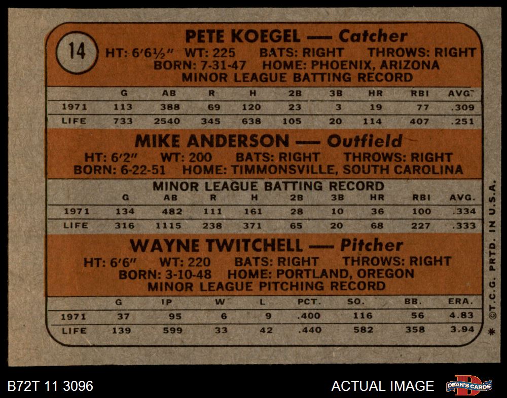 1972 Topps #14 - Mike Anderson / Pete Koegel / Wayne Twitchell Phillies Rookies 4 - VG/EX