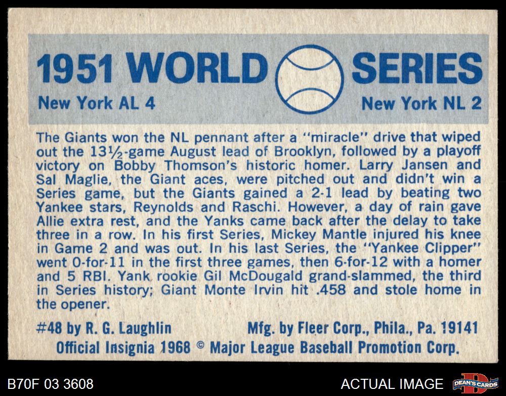 1970 Fleer World Series #48 1951 Yankees vs. Giants 7 - NM