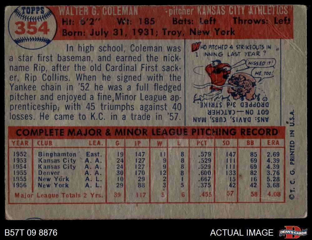 1957 Topps #354 Rip Coleman 1 - POOR