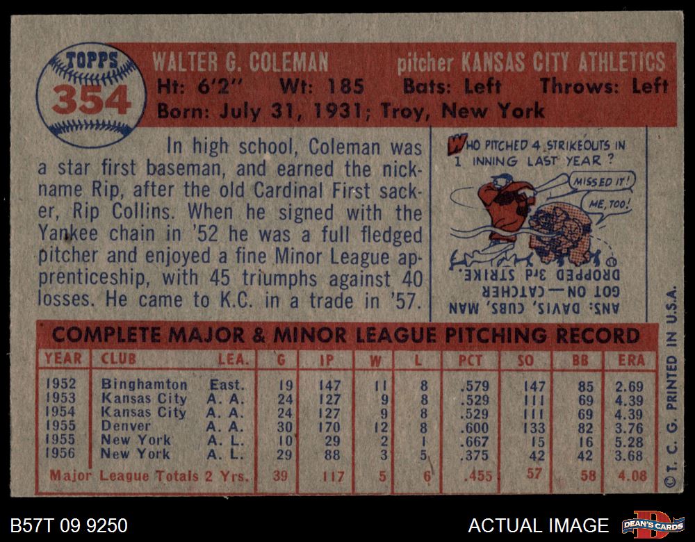1957 Topps #354 Rip Coleman