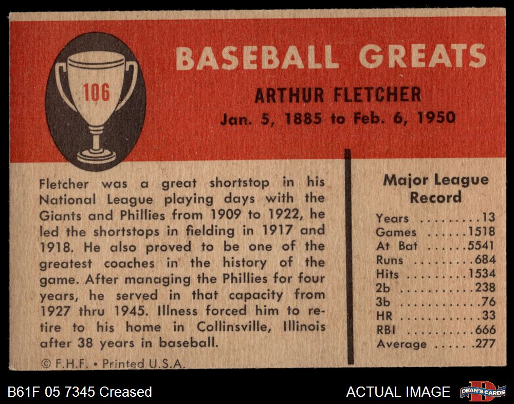 1961 Fleer #106 Art Fletcher Front Thumbnail