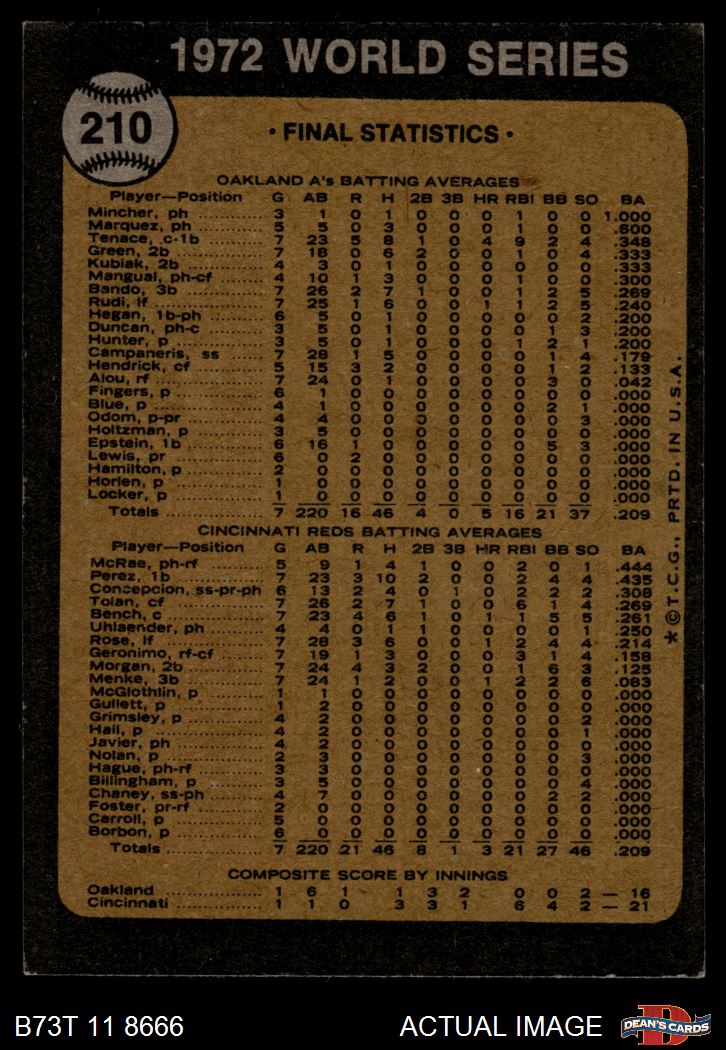 1973 Topps #210 1972 World Series - Summary - A's Win - World Champions 3 - VG