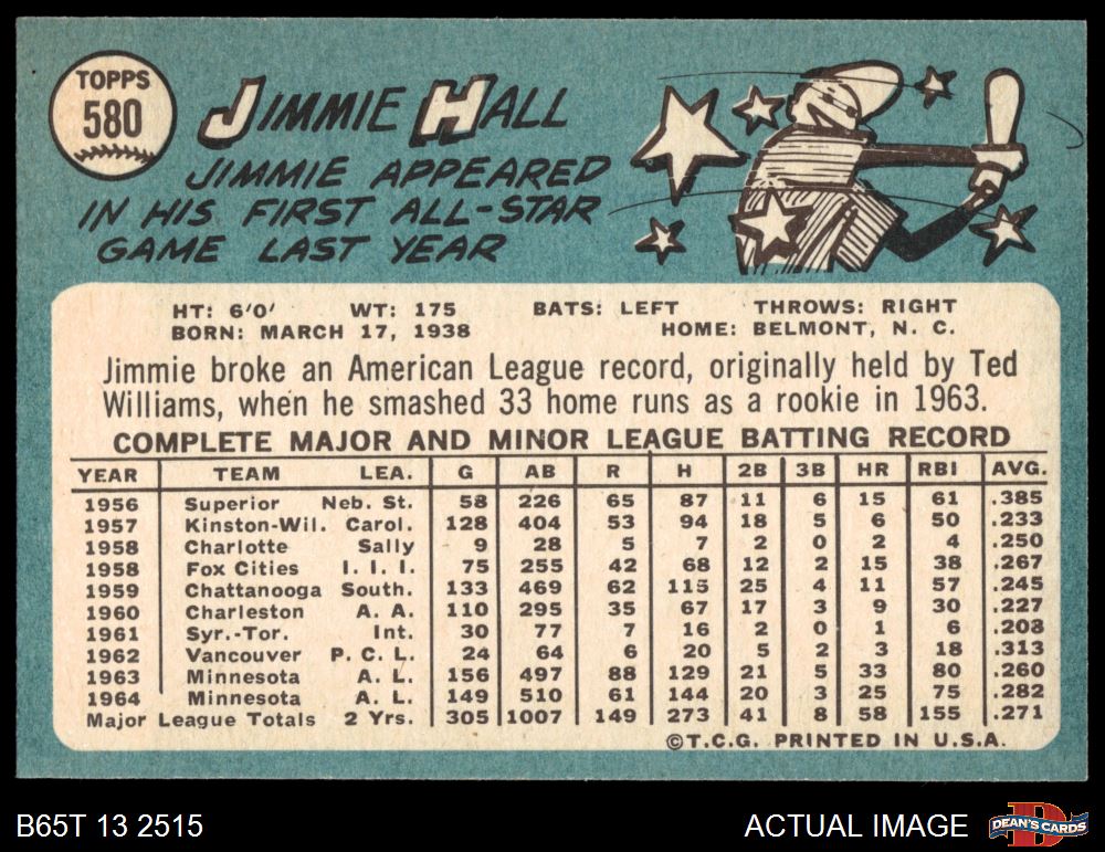 1965 Topps #580 Jimmie Hall