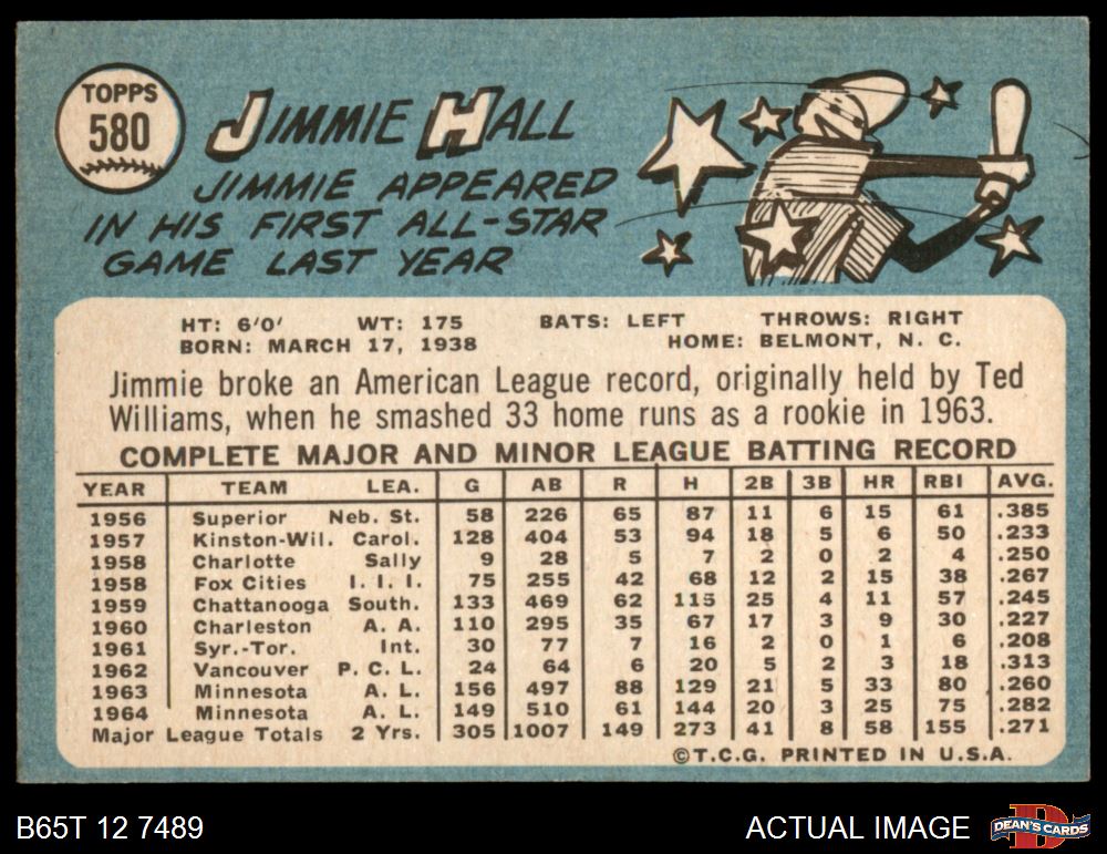 1965 Topps #580 Jimmie Hall 2 - GOOD