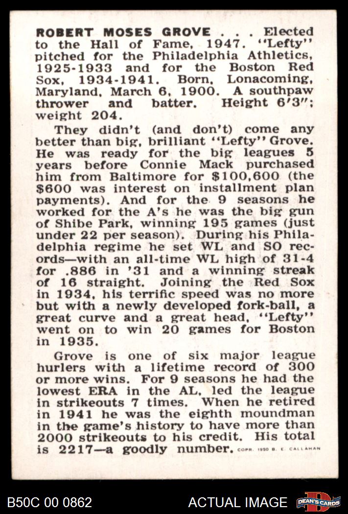 1950 Callahan Hall of Fame Lefty Grove 7.5 - NM+