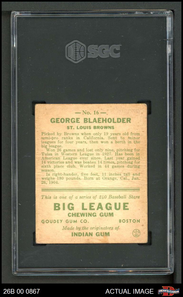 1933 Goudey #16 George Blaeholder SGC 1 - POOR