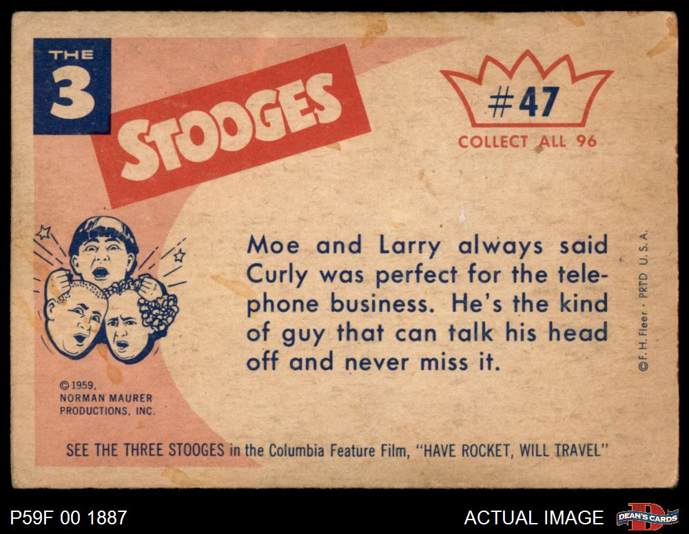 1959 Fleer Three Stooges #47 Just Thought I'd Drop By