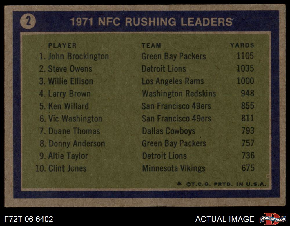 1972 Topps #2 - John Brockington / Steve Owens / Willie Ellison NFC Rushing Leaders 4 - VG/EX