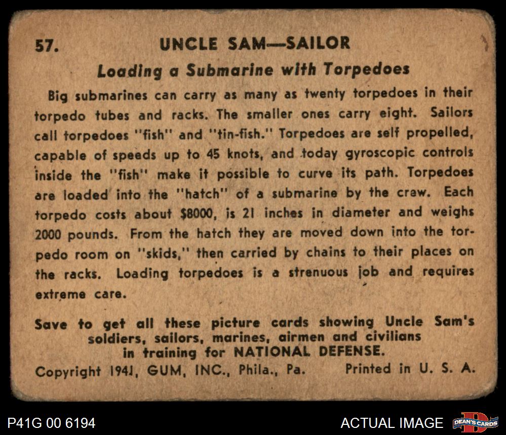 1941 Uncle Sam #57 Loading Submarine With Torpedoes