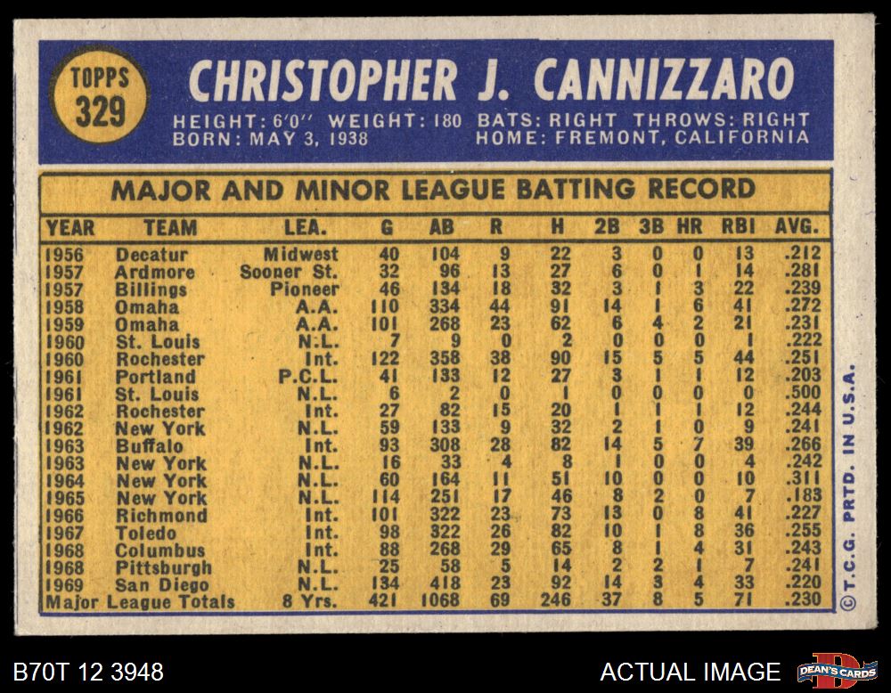 1970 Topps #329 Chris Cannizzaro 6.5 - EX/MT+