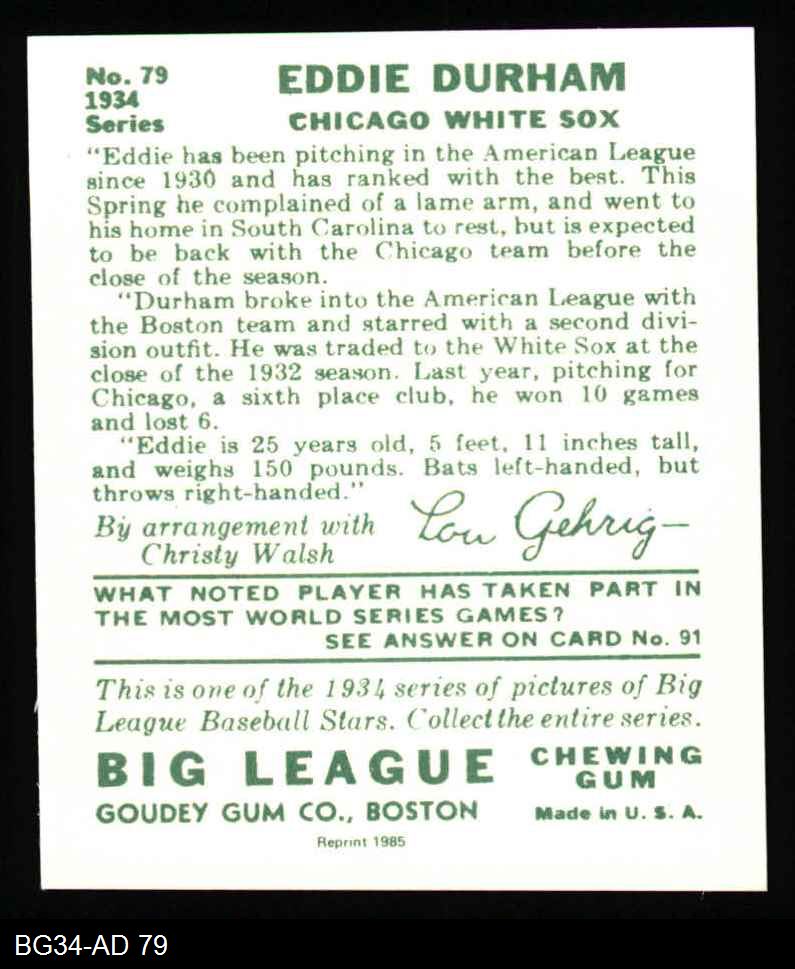 1934 Goudey Reprint #79 Eddie Durham 8 - NM/MT