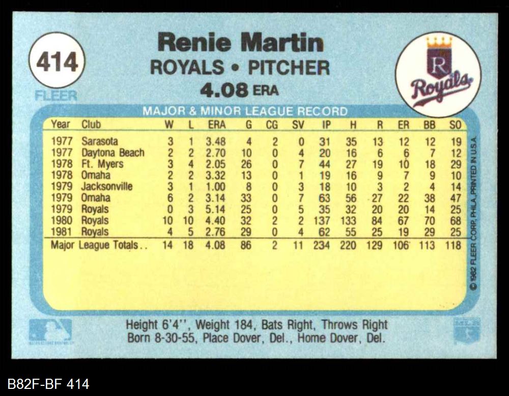 1982 Fleer #414 Renie Martin