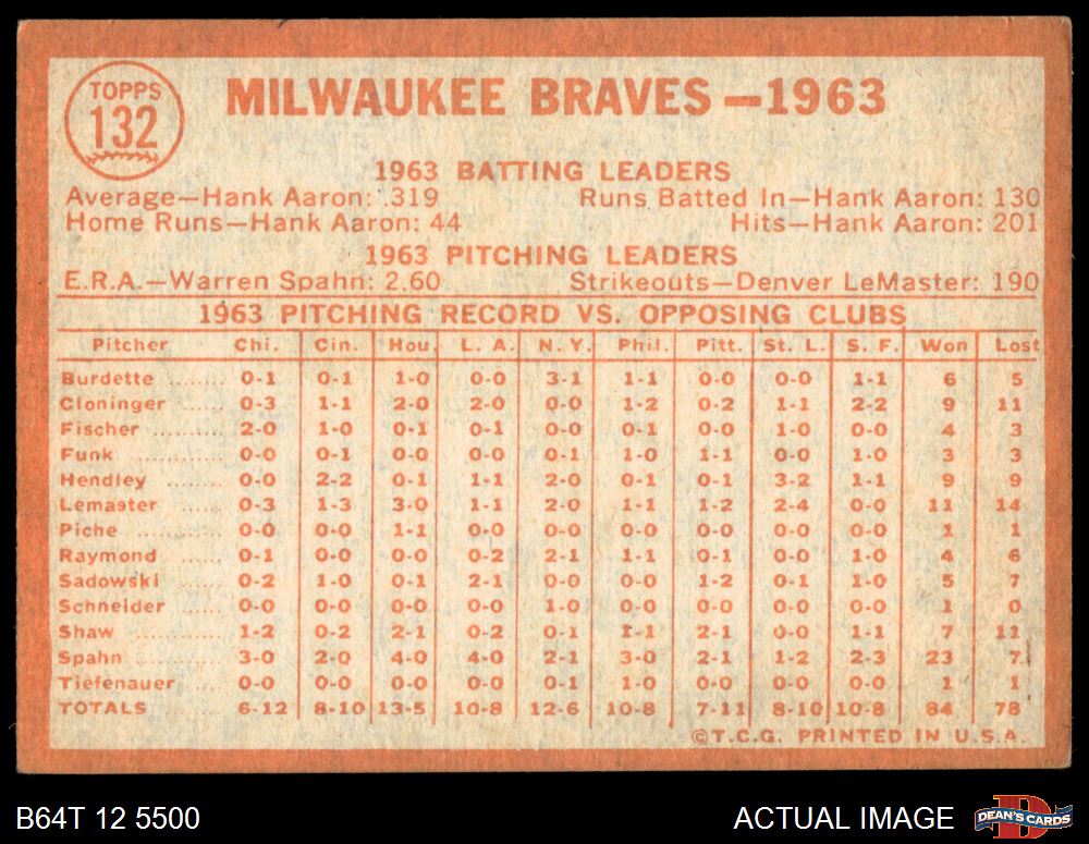1964 Topps #132 Braves Team 1 - POOR