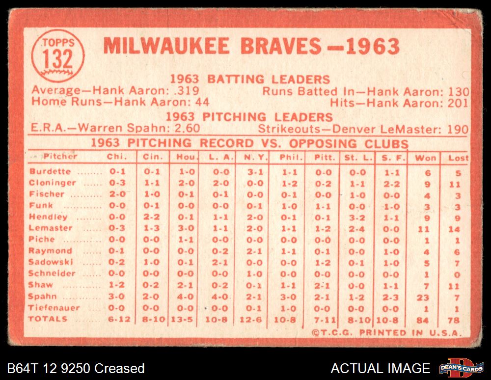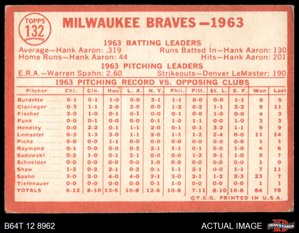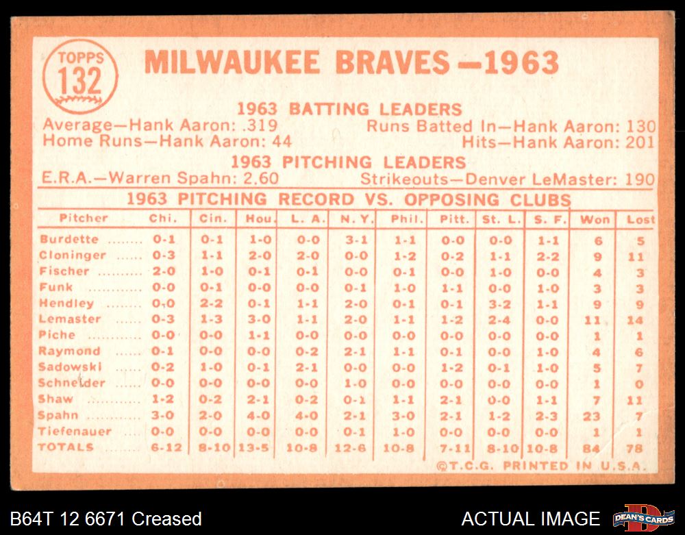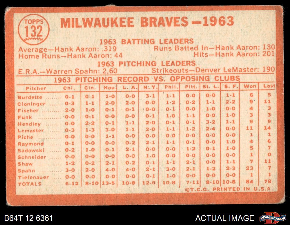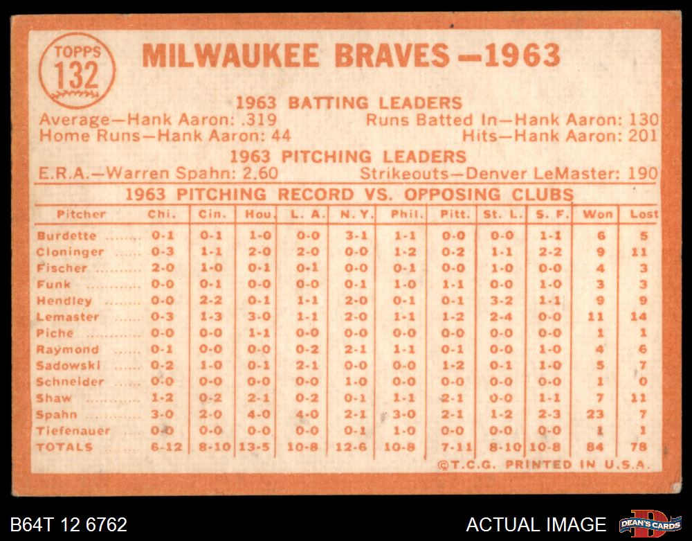 1964 Topps #132 Braves Team