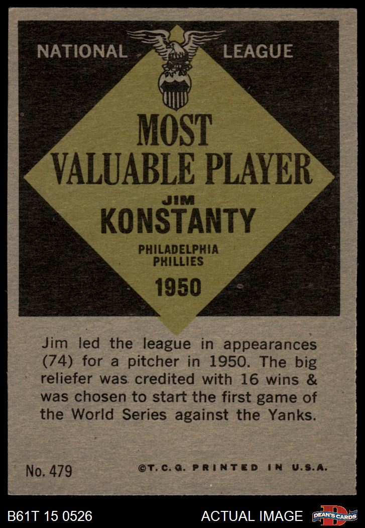 1961 Topps #479 - Jim Konstanty Most Valuable Player 4.5 - VG/EX+
