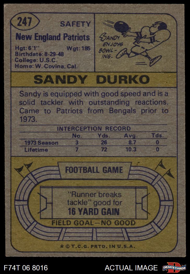 1974 Topps #247 Sandy Durko