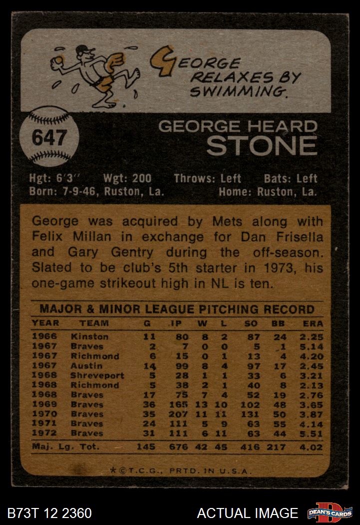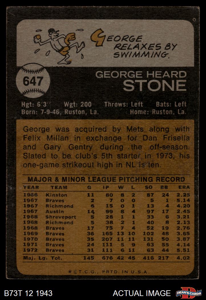 1973 Topps #647 George Stone 1.5 - FAIR