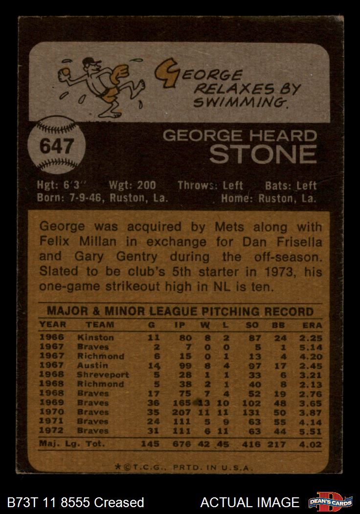 1973 Topps #647 George Stone 3 - VG