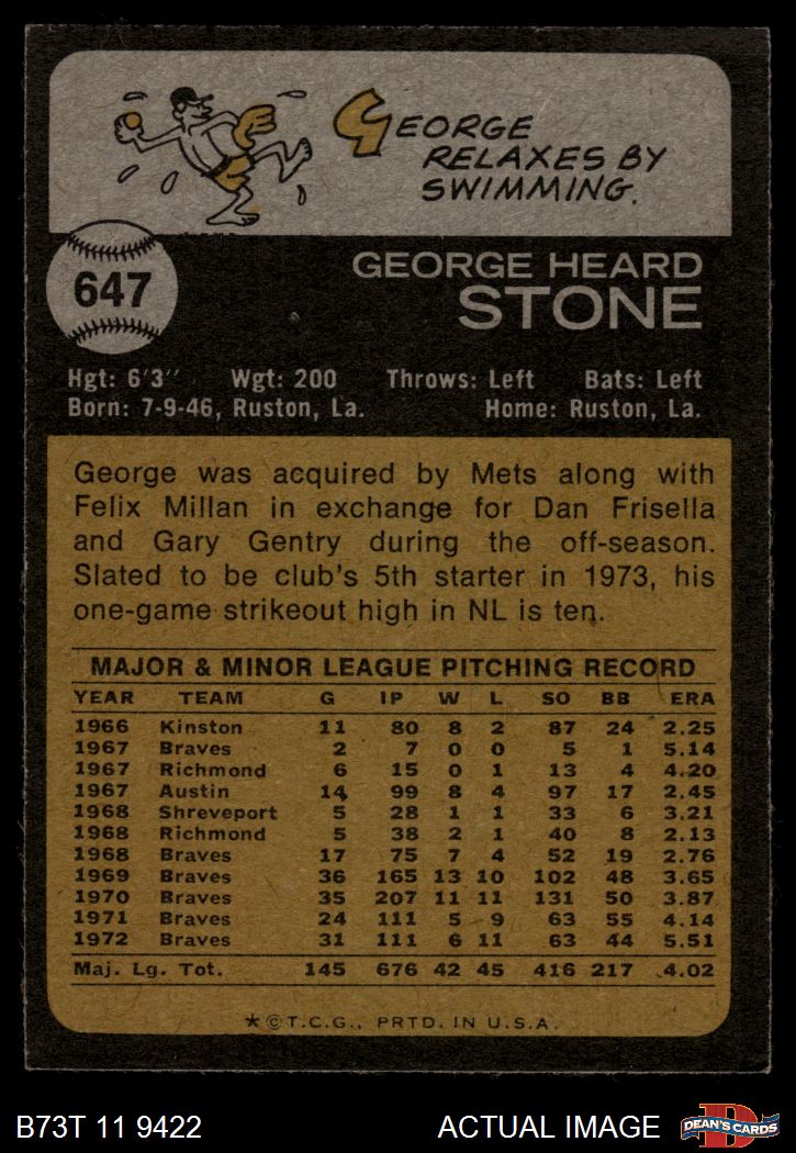 1973 Topps #647 George Stone 5 - EX