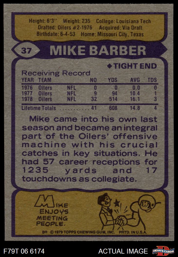 1979 Topps #37 Mike Barber 6.5 - EX/MT+