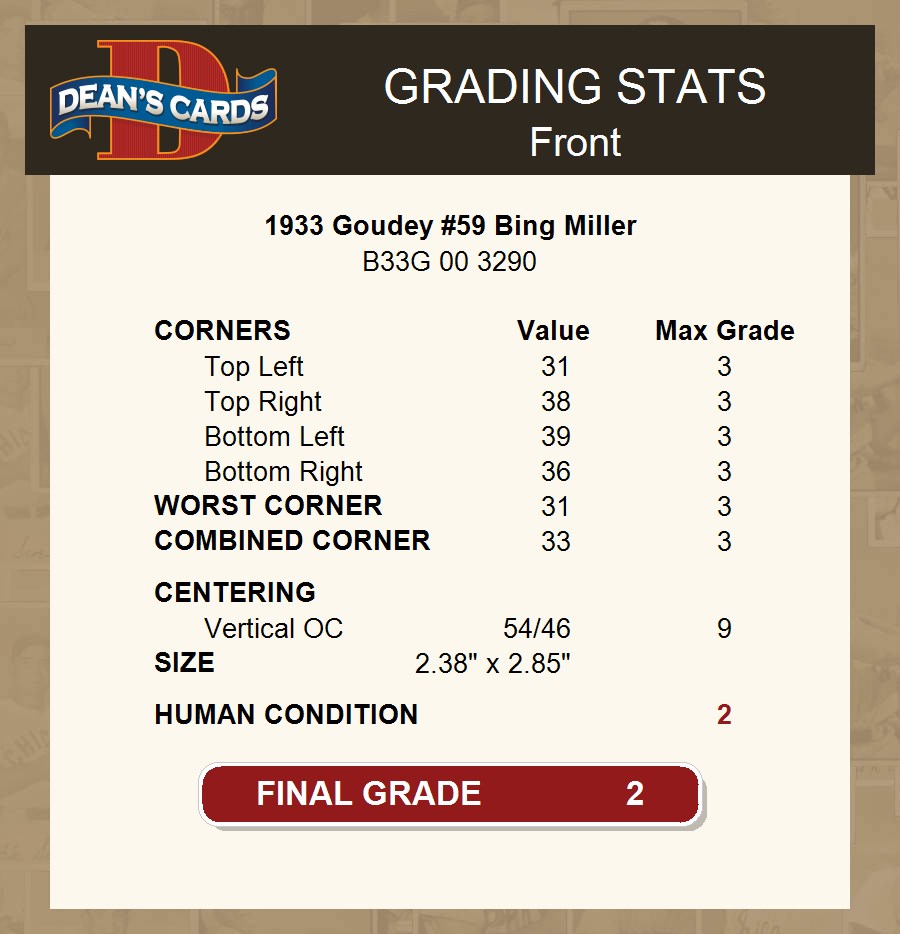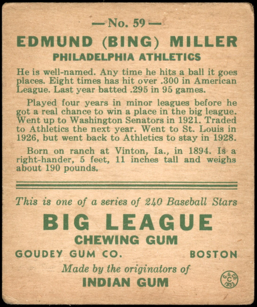 1933 Goudey #59 Bing Miller 2 - GOOD