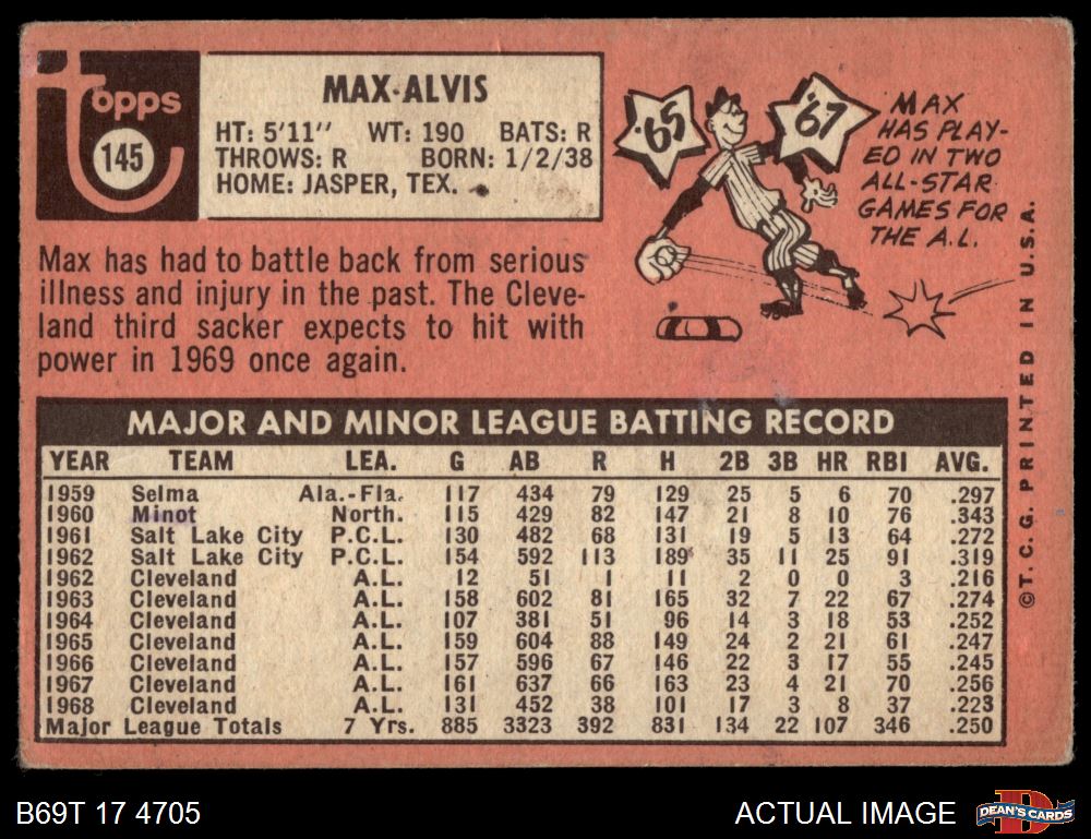 1969 Topps #145 Max Alvis 1.5 - FAIR