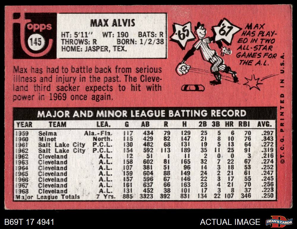 1969 Topps #145 Max Alvis 4.5 - VG/EX+