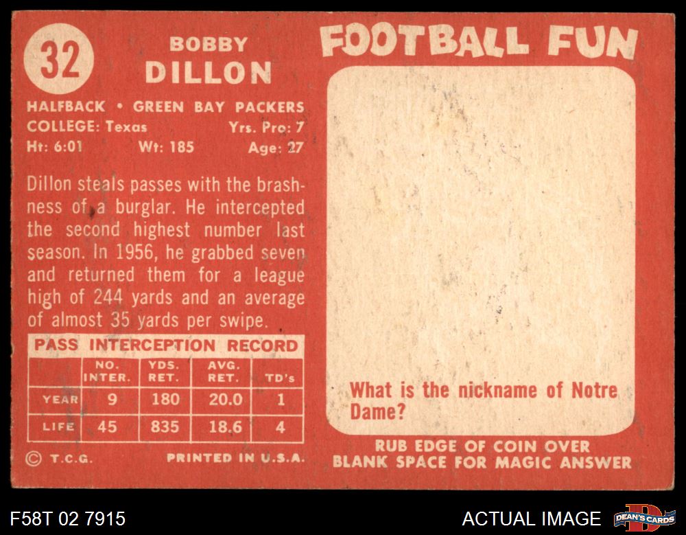 1958 Topps #32 Bobby Dillon 6 - EX/MT