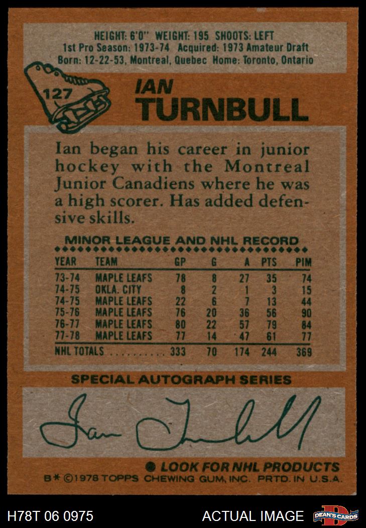 1978 Topps #127 Ian Turnbull 7 - NM