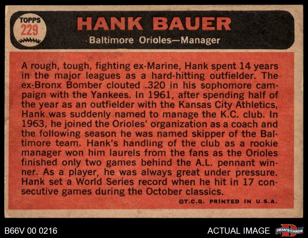 1966 Topps Venezuelan #229 Hank Bauer 4 - VG/EX