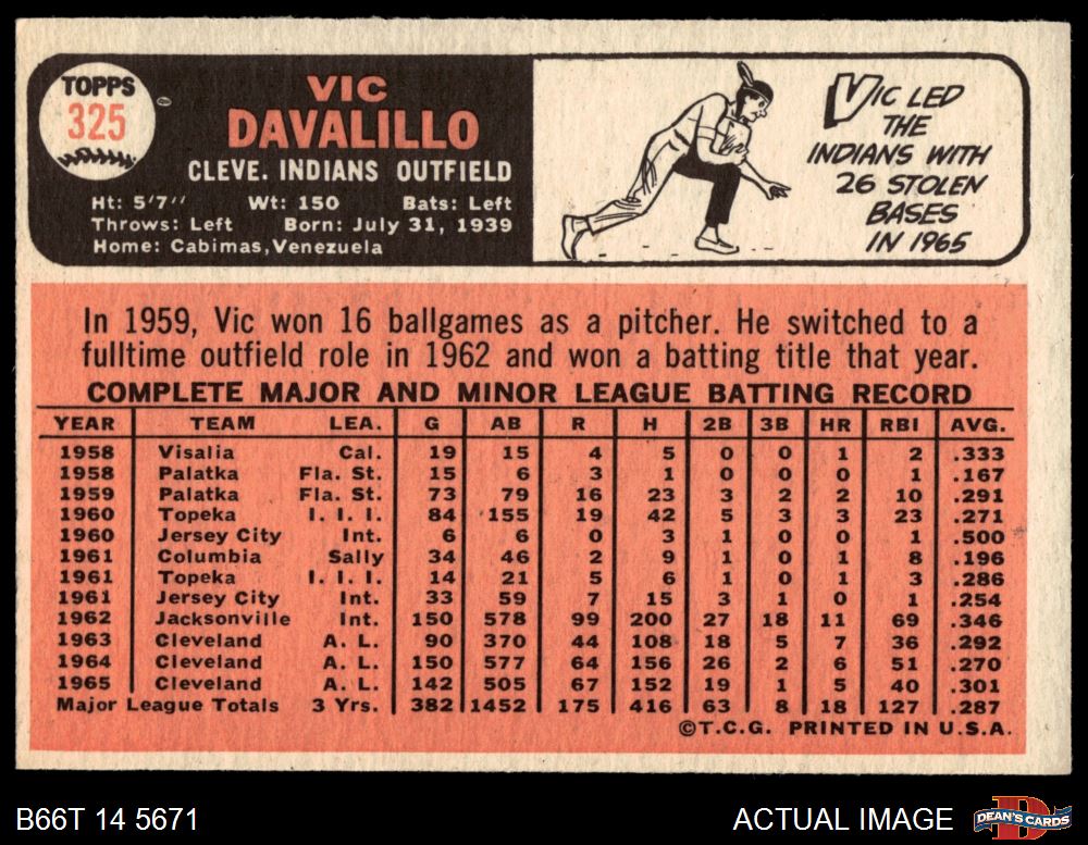 1966 Topps #325 Vic Davalillo 5 - EX