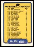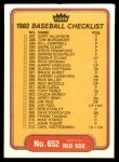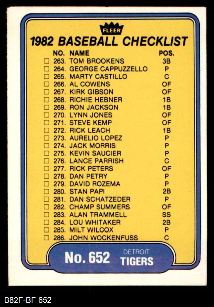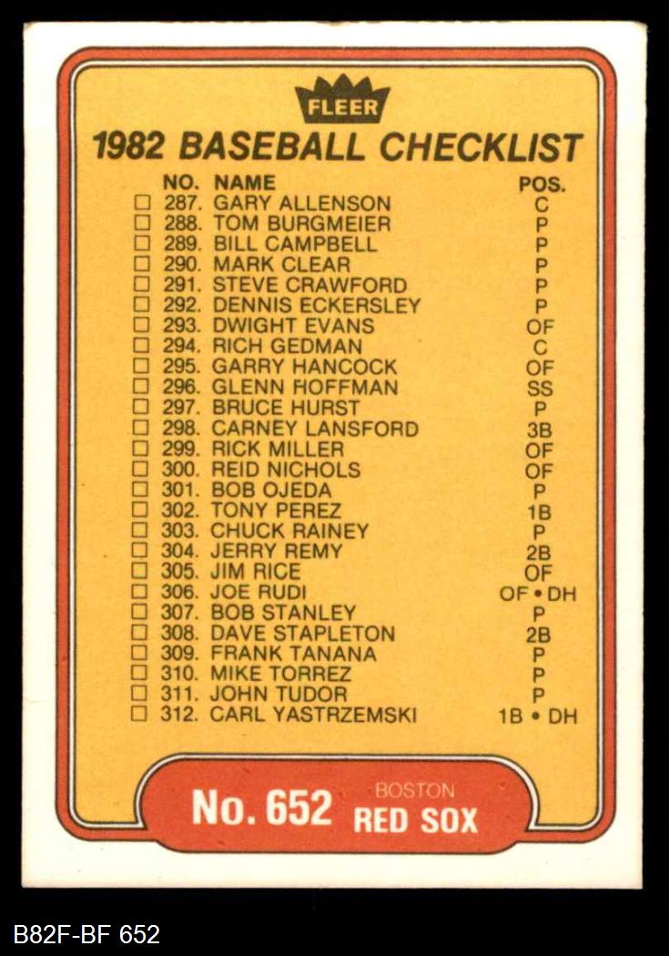 1982 Fleer #652 Tigers / Red Sox Checklist
