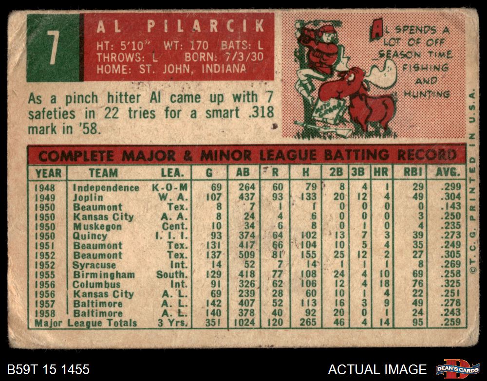 1959 Topps #7 Al Pilarcik 1 - POOR