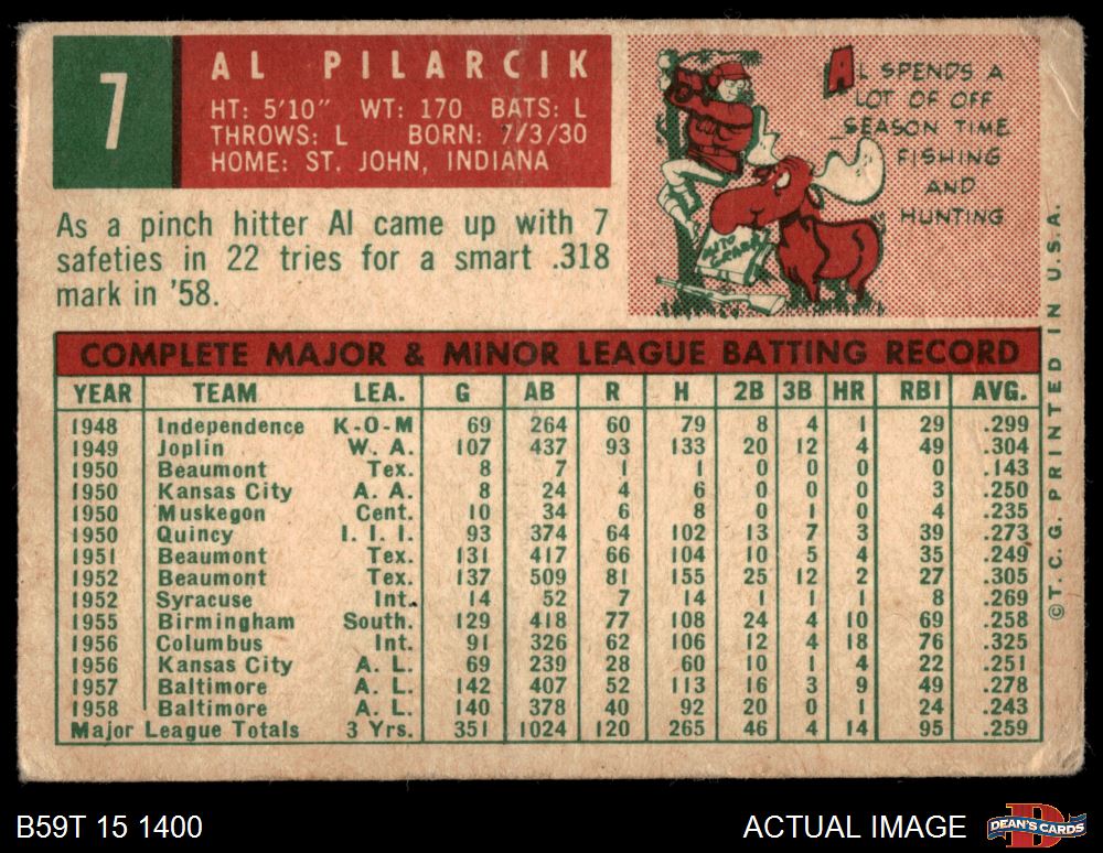 1959 Topps #7 Al Pilarcik