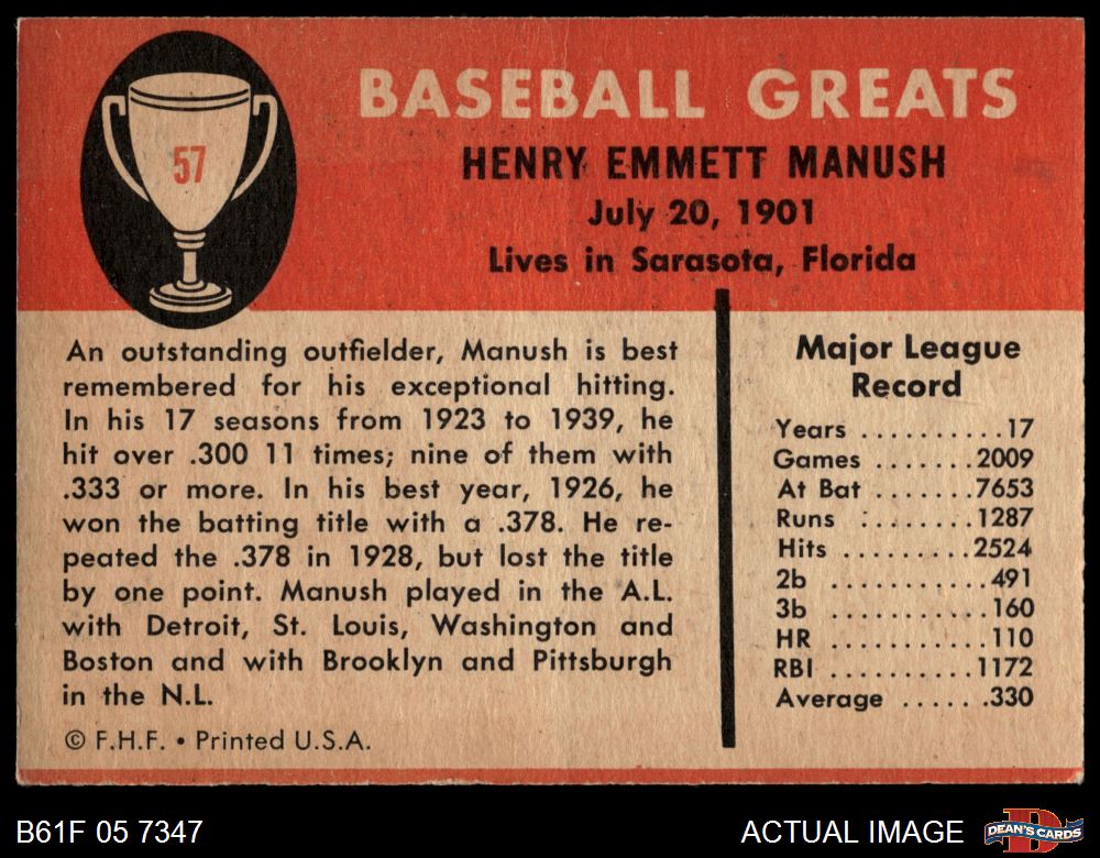 1961 Fleer #57 Heinie Manush