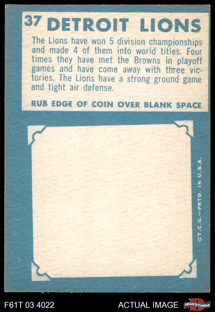 1961 Topps #37 Lions Team 5 - EX