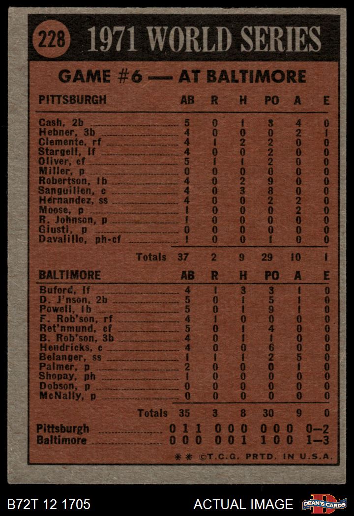 1972 Topps #228 - Manny Sanguillen / Frank Robinson 1971 World Series - Game #6 3 - VG