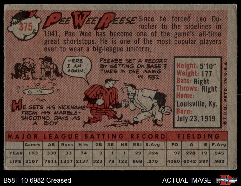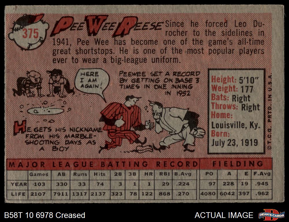 1958 Topps #375 Pee Wee Reese 2 - GOOD